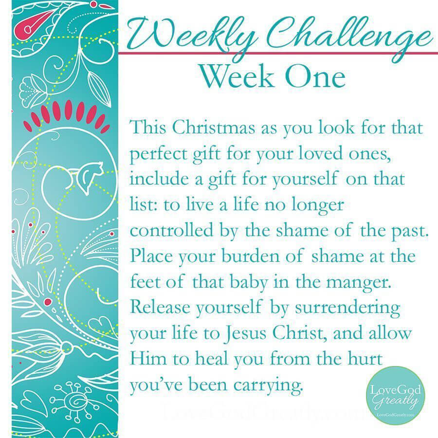 My challenge for us this week is to place the burden of shame, some of us have been carrying, at the feet of the baby born in that humble manger so many years ago. This Christmas as you look for that perfect gift for your loved ones, maybe, just maybe, you need to include a gift for yourself on that list…to live a life no longer controlled by the shame of the past. This Christmas release yourself from that heavy burden by surrendering your life to Jesus Christ and allow Him to heal you from the hurt you’ve been carrying.